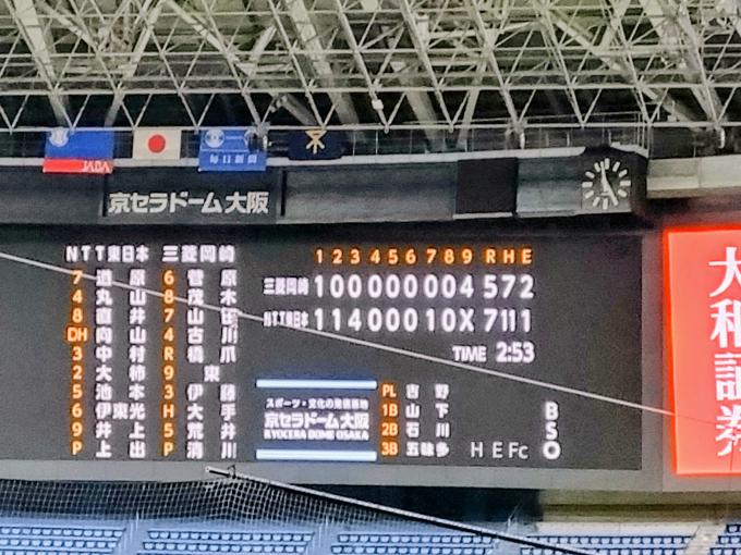 序盤の失策絡みの失点もあり、7-5でNTTに敗れ、