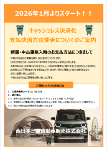 こんにちは、 ショップスタッフ青野です🌟 本日は 弊社でのお車ご購入時のお支払いに関して ご案内をさせて頂きます。 お客様には ご不便をお掛け致しますが、 何卒宜しくお願い…
