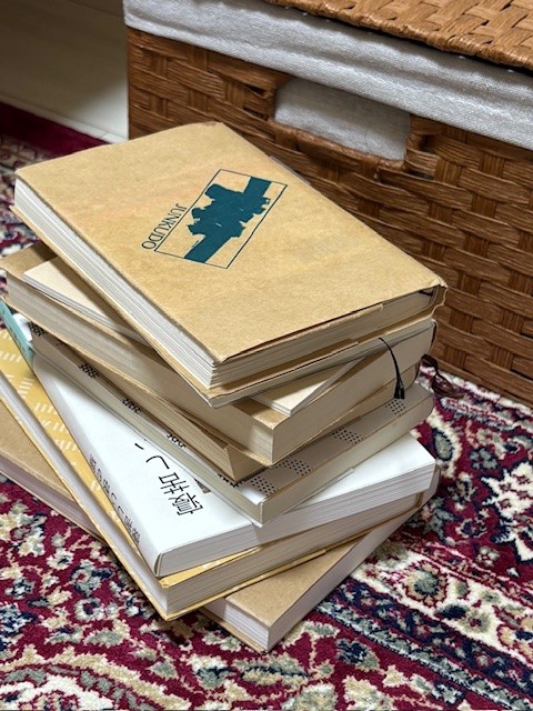 本棚がまだなくて、気づけば床に本がどんどん積み上がっています
