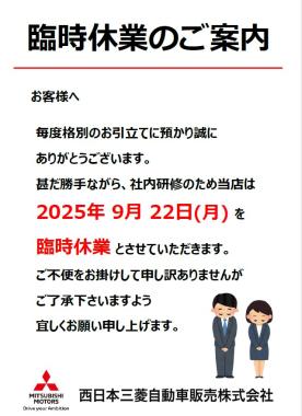 9月22日(月)臨時休業のお知らせ☆彡