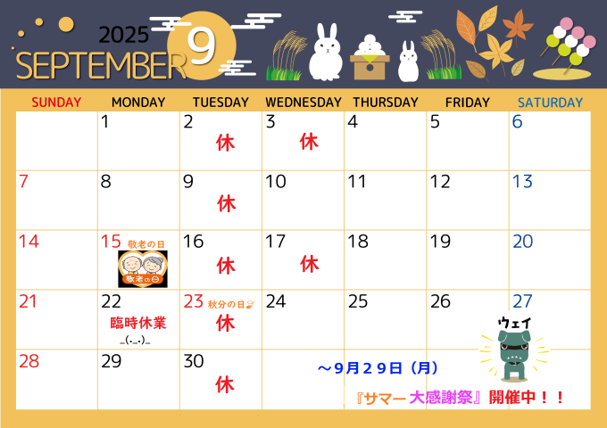 - 毎週火曜日・第1・3・5水曜日 ※8月は変則営業となります