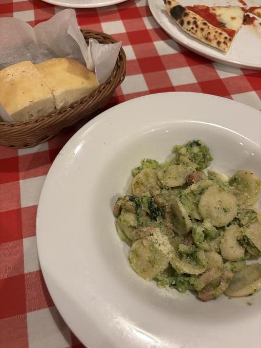 ベーコン・ブロッコリーのオレキユッテとピザを