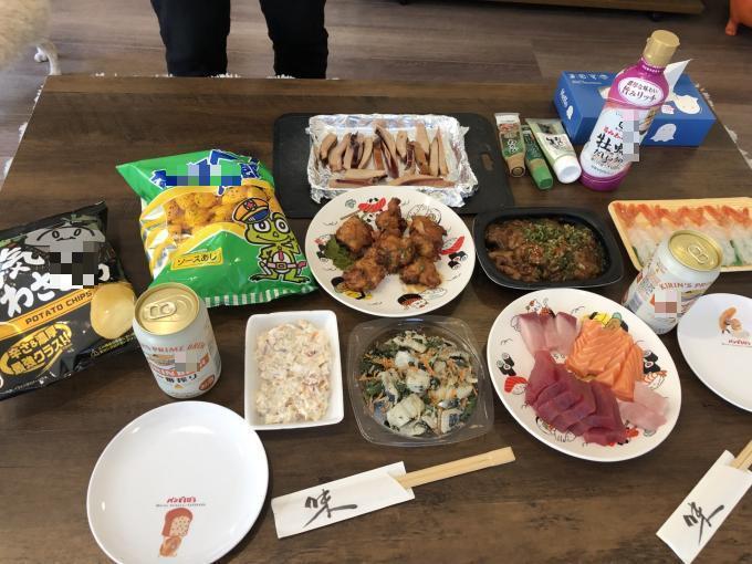 買ってきたおつまみを並べるだけで