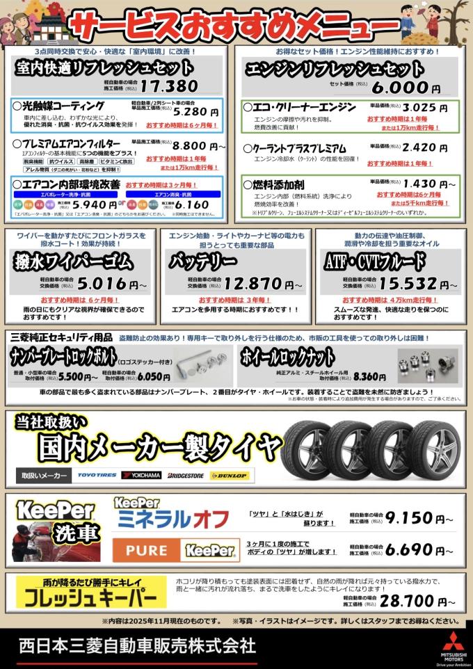 タイヤ・バッテリー・エアコンフィルターなどAutumnフェア限定の割引もございます