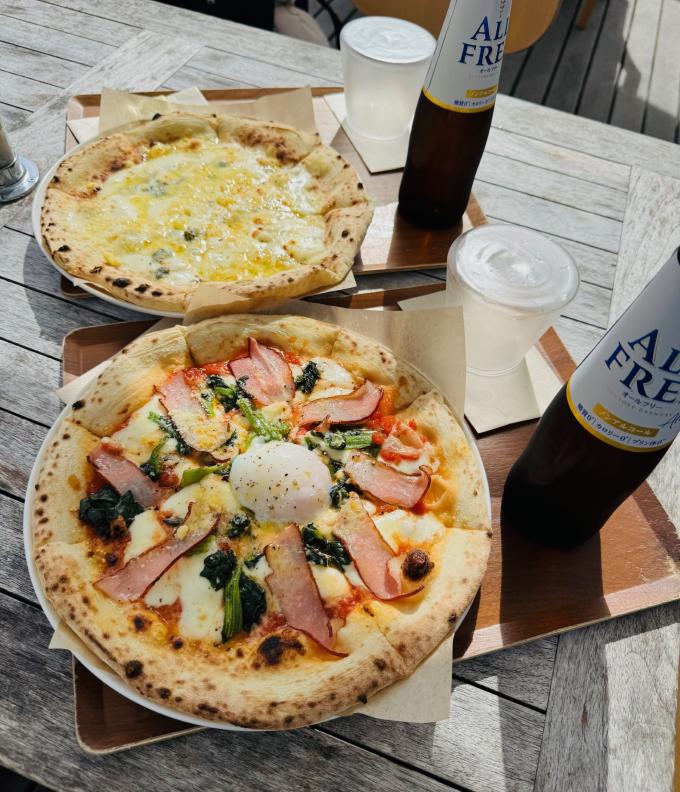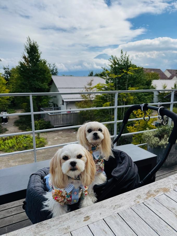 🐶🐶OKの富士山の見えるテラスで🍕を頂きました~富士山を眺めながらのランチ最高でした👍💕
