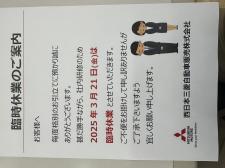 ※真庭店は上記定休に加え「第2・第4水曜日」も定休です。但し、4月10日、5月8日は営業いたします。詳しくはカレンダーでご確認下さい。